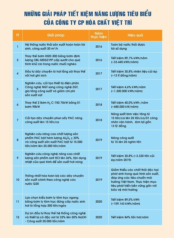 Chia sẻ về những kết quả đạt được sau quá trình nỗ lực đổi mới công nghệ và cải tiến chất lượng sản phẩm, ông Văn Đình Hoan – Tổng giám đốc Công ty cho biết, tỉ lệ tiết kiệm năng lượng suất tiêu hao củi ép/tấn xút 32% năm 2020 so với năm 2016 đạt 52,74%. Đây thực sự là kết quả của sự nỗ lực không ngừng của tập thể lãnh đạo, cán bộ, công nhân viên Công ty CP Hóa chất Việt Trì, hướng tới mục tiêu trở thành doanh nghiệp sản xuất sạch và phát triển bền vững của ngành Hóa chất Việt Nam.
