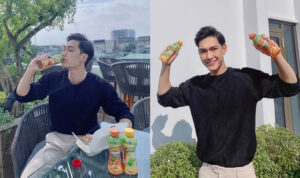 Chàng mẫu say mê trà Jokky vị đào, lúc nào cũng “thủ” sẵn một chai bên mình