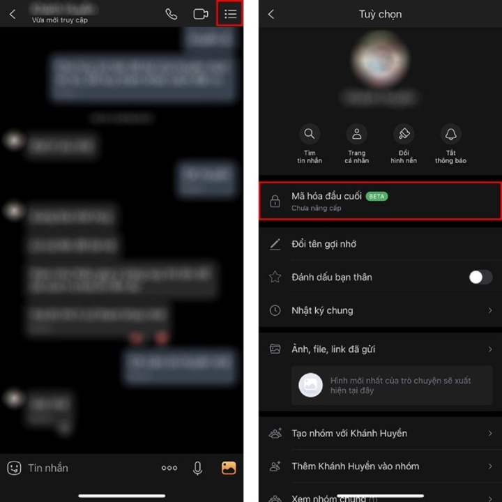 Bước 2. Mở cuộc trò chuyện bạn muốn, chọn mục Tùy chọn > Mã hóa đầu cuối.